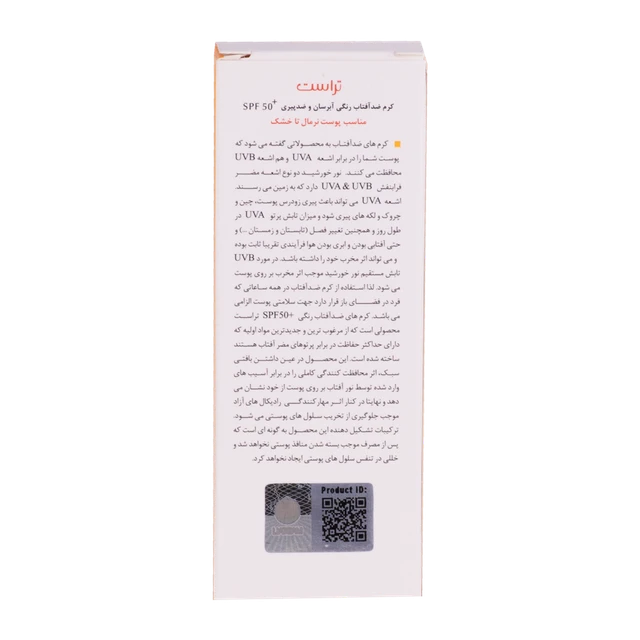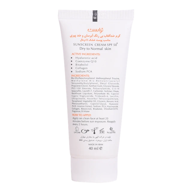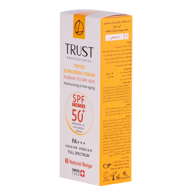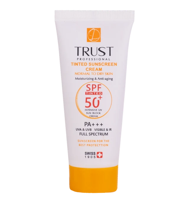 کرمهای ضدآفتاب رنگی تراست با SPF50+ از مرغوبترین و جدیدترین مواد اولیه موثره دارای حداکثر حفاظت دربرابر پرتوهای مضر خورشید ساخته شدهاند؛ این کرم با وجود بهرهمندی از بافتی سبک، دربرابر آسیبهای وارده توسط نور خورشید به خوبی از پوست محافظت و با مهار رادیکالهای آزاد از تخریب سلولهای پوستی جلوگیری میکند. همچنین با مصرف این محصول، بدون بسته شدن منافذ پوستی و ایجاد خلل در تنفس سلولهای پوستی، پوستتان آبرسانی میشود.