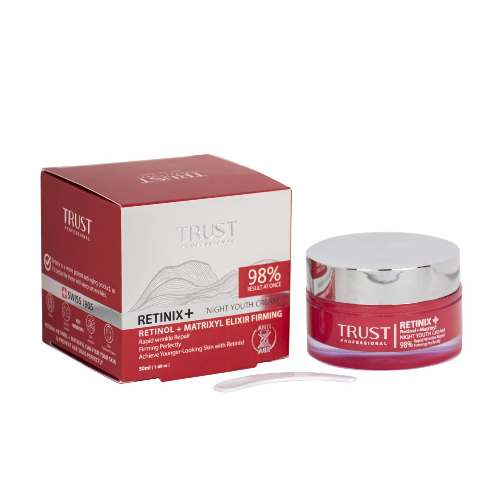کرم جوان ساز رتینول تراست با بهرهمندی از ماده مؤثره رتینول و با افزایش تکثیر سلولهای پوست و افزایش ساخت کلاژن در آنها، به بازسازی سلولهای مرده پوستی و به استحکام پوست کمک میکند.